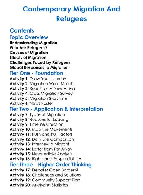 Contemporary Migration And Refugees Worksheet Activity Booklet