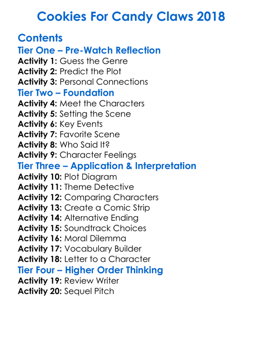 Cookies For Candy Claws 2018 Worksheet Activity Booklet