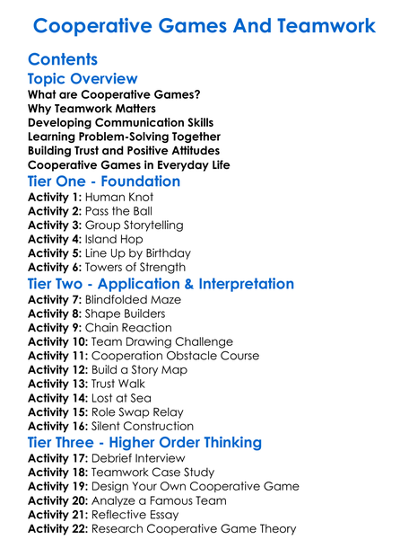 Cooperative Games And Teamwork Worksheet Activity Booklet