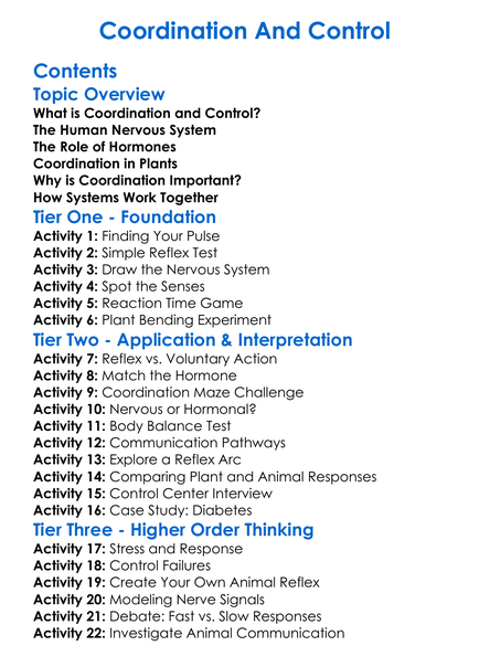 Coordination And Control Worksheet Activity Booklet