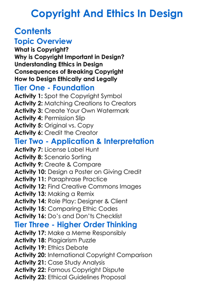 Copyright And Ethics In Design Worksheet Activity Booklet