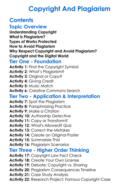 Copyright And Plagiarism Worksheet Activity Booklet