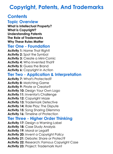 Copyright Patents And Trademarks Worksheet Activity Booklet