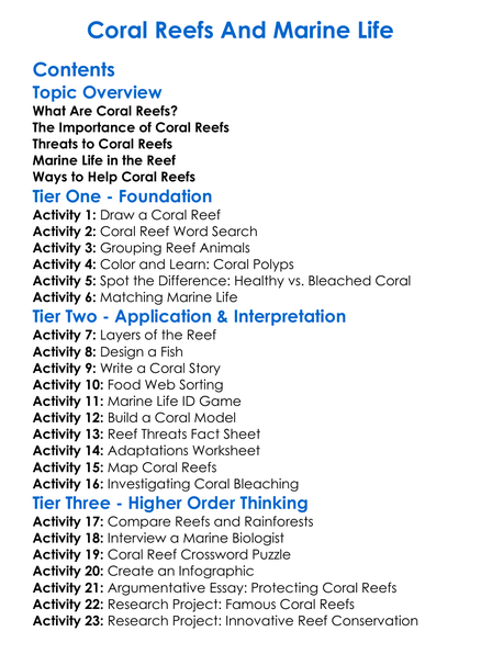 Coral Reefs And Marine Life Worksheet Activity Booklet