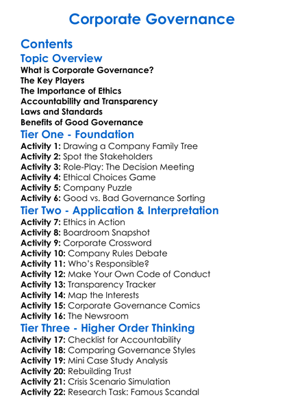 Corporate Governance Worksheet Activity Booklet