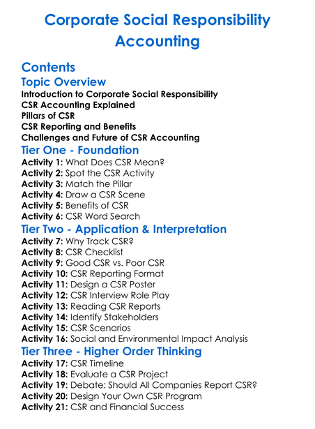 Corporate Social Responsibility Accounting Worksheet Activity Booklet