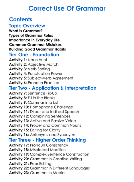Correct Use Of Grammar Worksheet Activity Booklet