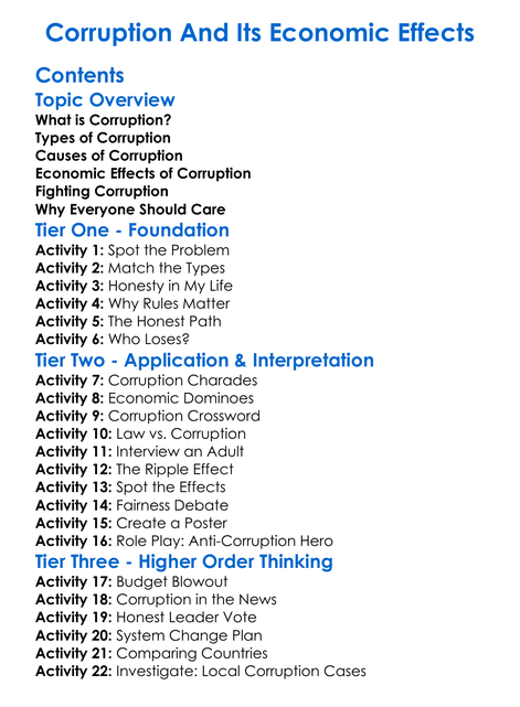 Corruption And Its Economic Effects Worksheet Activity Booklet
