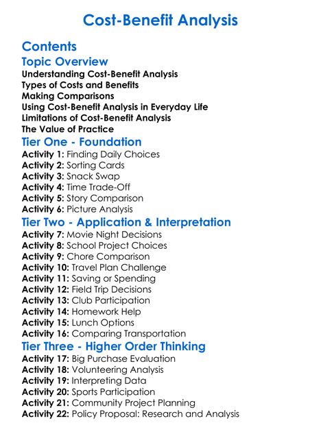 Cost-Benefit Analysis Worksheet Activity Booklet