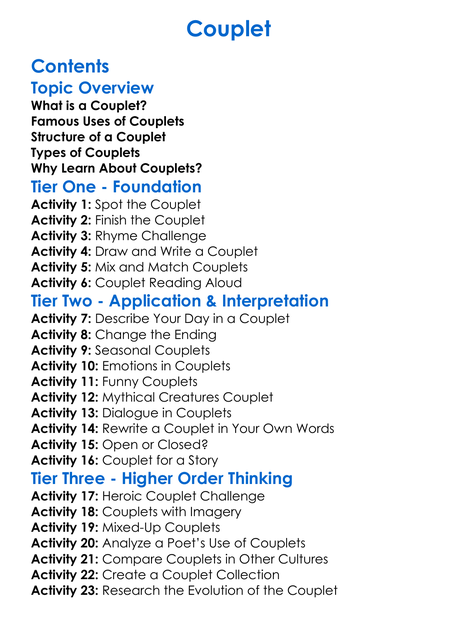 Couplet Worksheet Activity Booklet