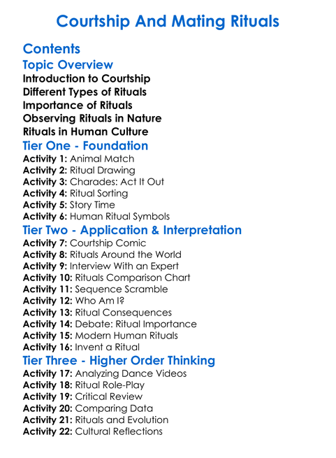 Courtship And Mating Rituals Worksheet Activity Booklet