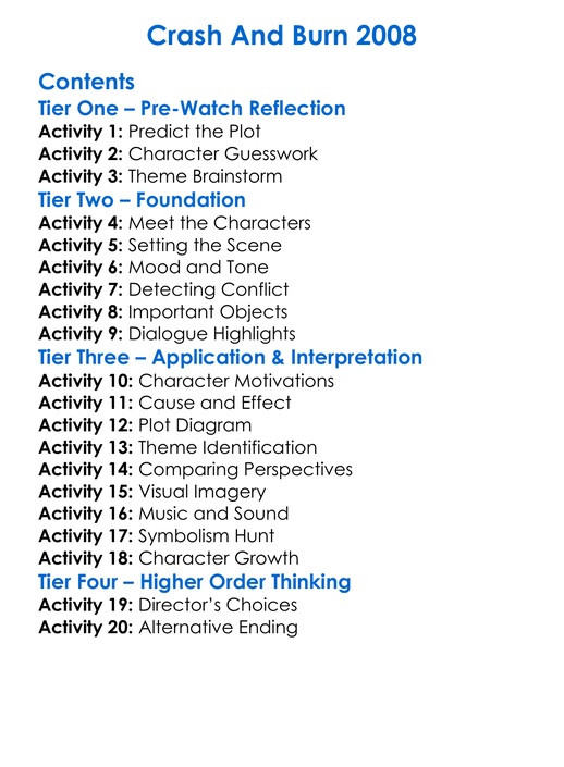 Crash And Burn 2008 Worksheet Activity Booklet