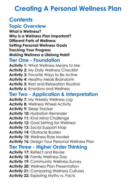 Creating A Personal Wellness Plan Worksheet Activity Booklet