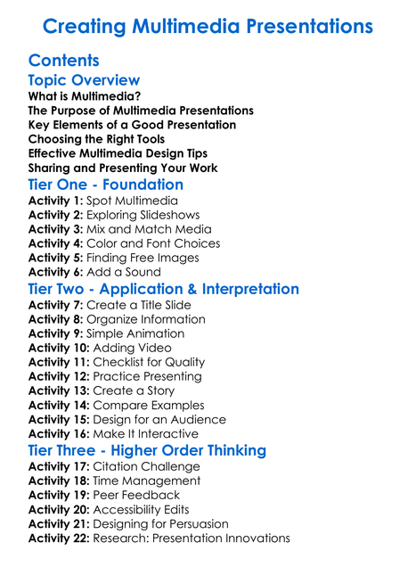 Creating Multimedia Presentations Worksheet Activity Booklet