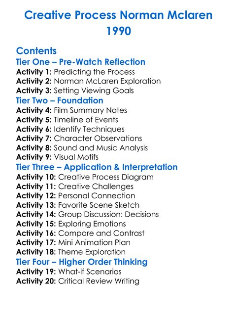Creative Process Norman Mclaren 1990 Worksheet Activity Booklet
