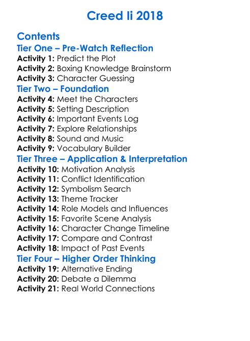 Creed Ii 2018 Worksheet Activity Booklet