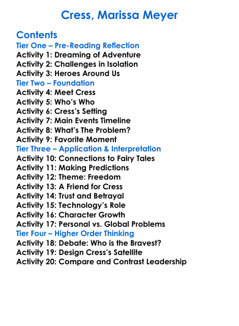 Cress Marissa Meyer Worksheet Activity Booklet