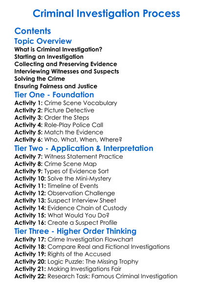 Criminal Investigation Process Worksheet Activity Booklet