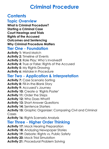 Criminal Procedure Worksheet Activity Booklet