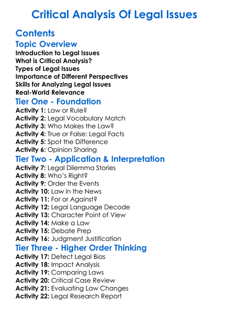 Critical Analysis Of Legal Issues Worksheet Activity Booklet
