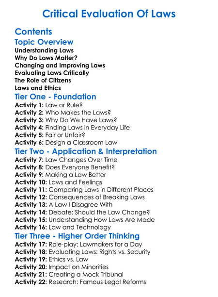 Critical Evaluation Of Laws Worksheet Activity Booklet