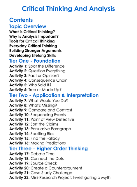 Critical Thinking And Analysis Worksheet Activity Booklet