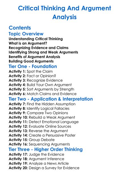 Critical Thinking And Argument Analysis Worksheet Activity Booklet