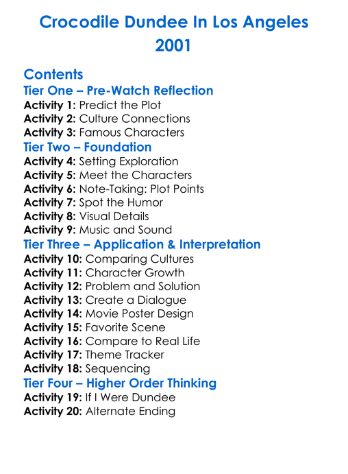 Crocodile Dundee In Los Angeles 2001 Worksheet Activity Booklet