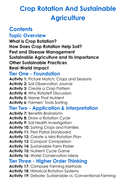 Crop Rotation And Sustainable Agriculture Worksheet Activity Booklet