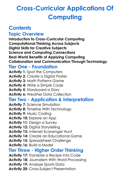 Cross-Curricular Applications Of Computing Worksheet Activity Booklet
