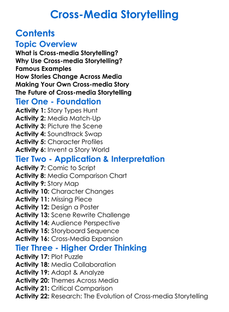 Cross-Media Storytelling Worksheet Activity Booklet