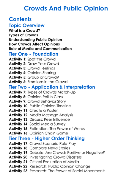 Crowds And Public Opinion Worksheet Activity Booklet