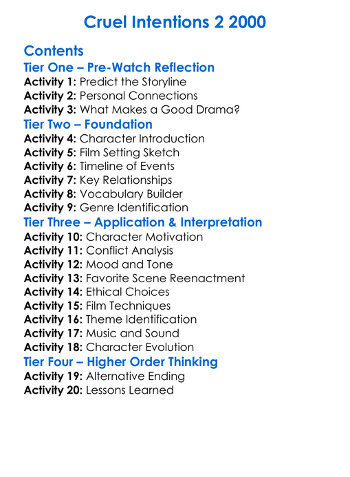 Cruel Intentions 2 2000 Worksheet Activity Booklet