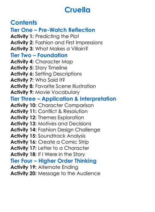Cruella Worksheet Activity Booklet