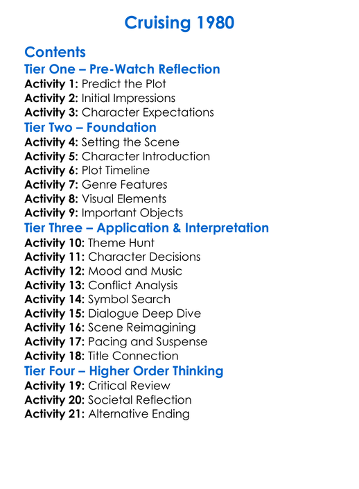 Cruising 1980 Worksheet Activity Booklet