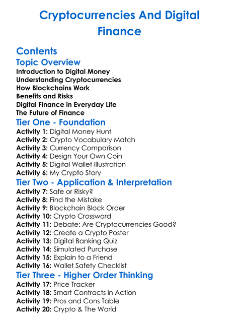 Cryptocurrencies And Digital Finance Worksheet Activity Booklet