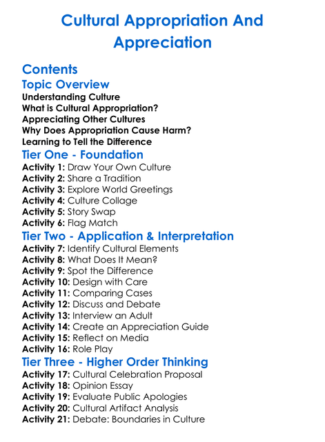 Cultural Appropriation And Appreciation Worksheet Activity Booklet