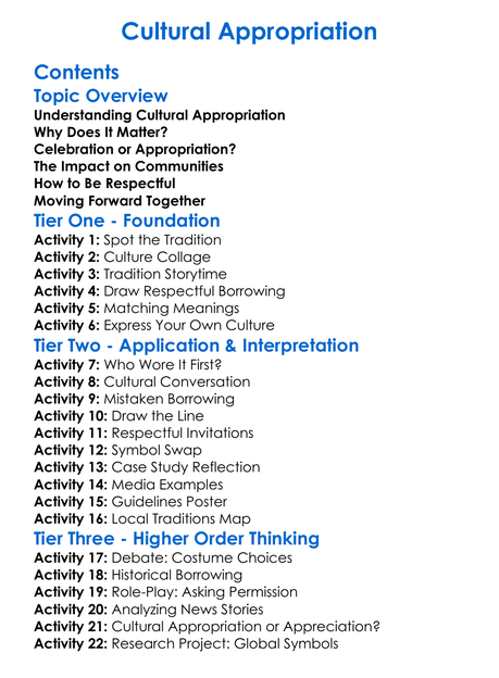 Cultural Appropriation Worksheet Activity Booklet