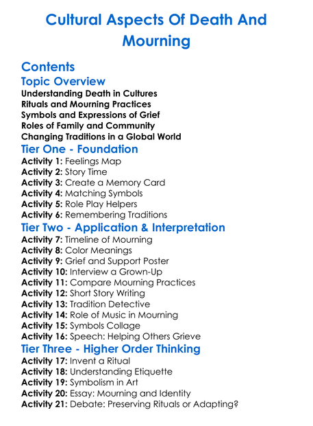 Cultural Aspects Of Death And Mourning Worksheet Activity Booklet