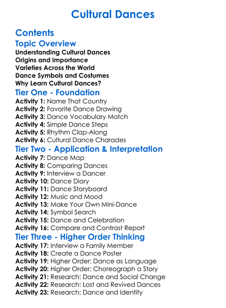 Cultural Dances Worksheet Activity Booklet