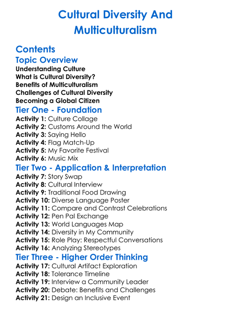Cultural Diversity And Multiculturalism Worksheet Activity Booklet