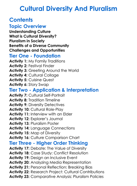 Cultural Diversity And Pluralism Worksheet Activity Booklet