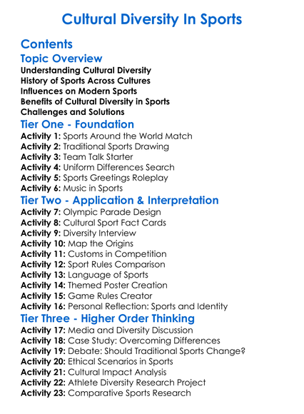 Cultural Diversity In Sports Worksheet Activity Booklet