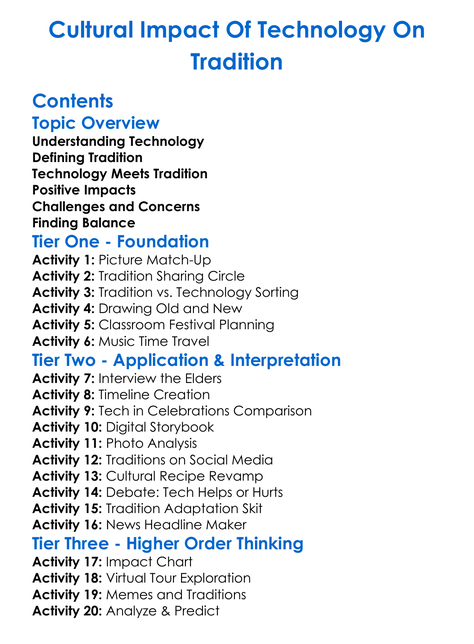 Cultural Impact Of Technology On Tradition Worksheet Activity Booklet