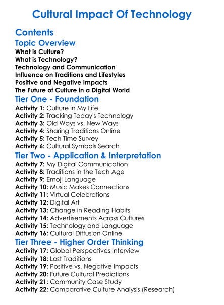 Cultural Impact Of Technology Worksheet Activity Booklet