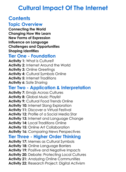 Cultural Impact Of The Internet Worksheet Activity Booklet