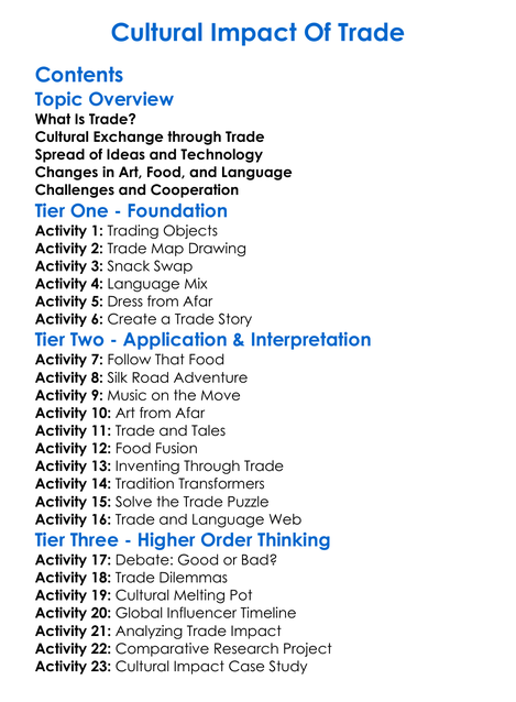 Cultural Impact Of Trade Worksheet Activity Booklet