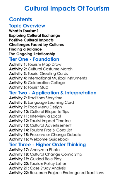 Cultural Impacts Of Tourism Worksheet Activity Booklet