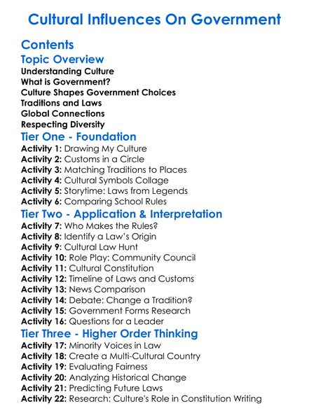 Cultural Influences On Government Worksheet Activity Booklet