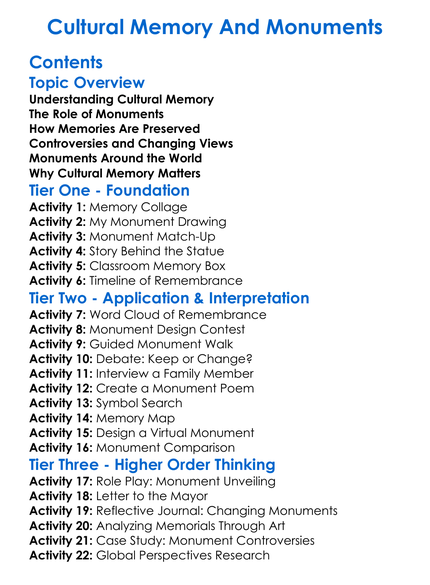 Cultural Memory And Monuments Worksheet Activity Booklet